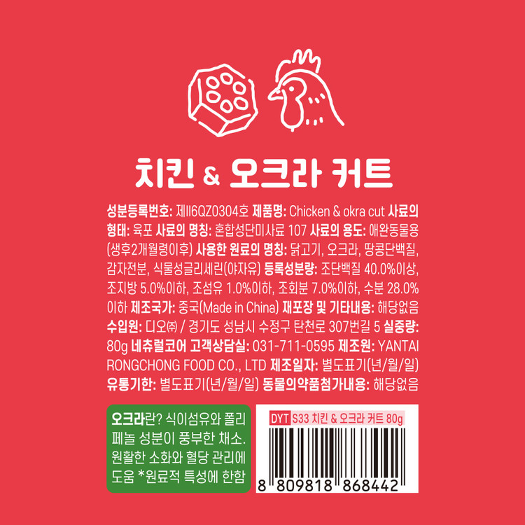 019 네츄럴코어 YT 바이트 치킨&오크라 커트 80g