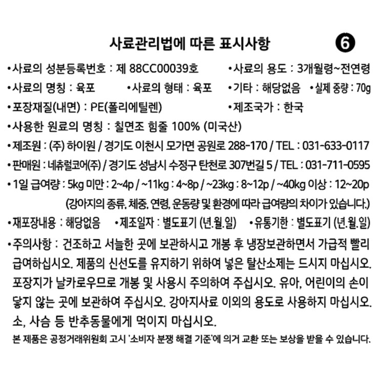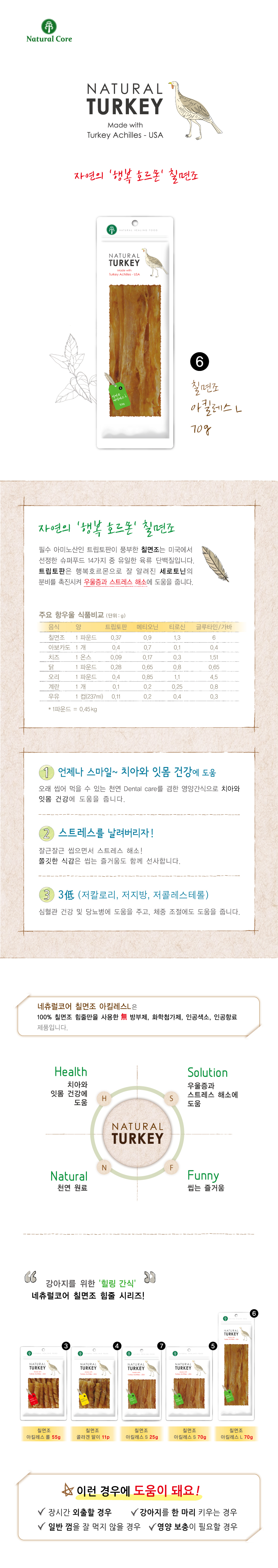 019 네츄럴코어 칠면조 힘줄 아킬레스 70g L사이즈